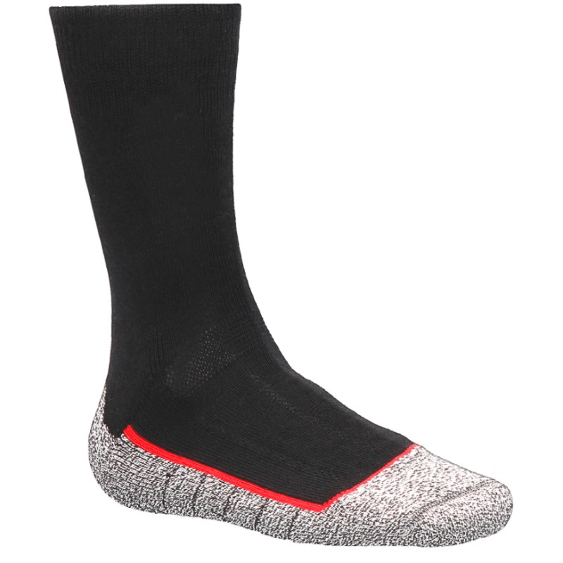 De thermo werksokken Bata Thermo MS 3 zorgen voor warme en drogere voeten. Ze hebben een antibacteriële werking met een versterkte hak en teen. Ook geven ze extra bescherming aan de enkel, de zool en de achillespees. De Thermo MS 3 werksokken hebben Air Flow voor goede luchtdoorlating. De Pro-Cool vezels zorgen voor goede vochtafvoer waarbij uw voeten langer droog en warm blijven. De sokken hebben een ESD antistatische werking. Ze zijn gemaakt van krimpvast wol en polyamide met Pro-Cool polyester en elastaan.