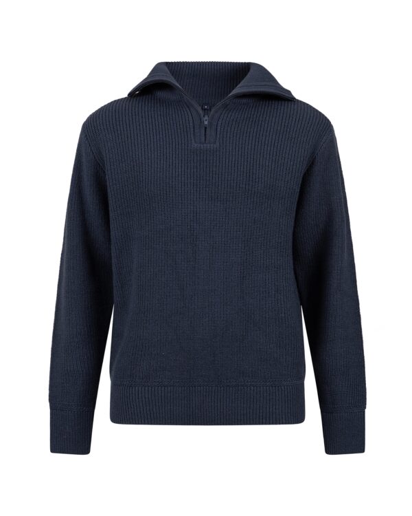 De Atlantic gebreide trui is een stijlvolle en warme herentrui, ideaal voor koude dagen. De trui is gemaakt van een hoogwaardige mix van acryl en wol, wat zorgt voor een zachte en comfortabele pasvorm. De opstaande kraag met halve ritssluiting biedt extra warmte en een stoere uitstraling. De elastisch geribde boorden aan de kraag, manchetten en zoom zorgen voor een goede pasvorm en extra comfort.